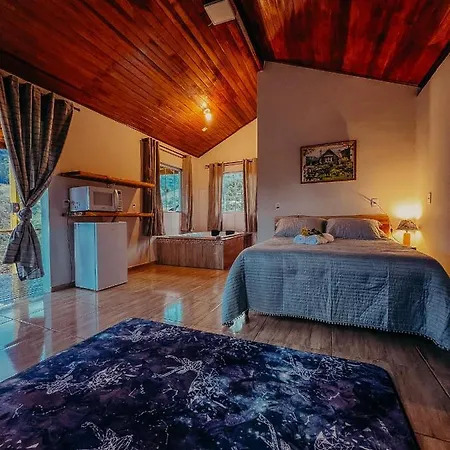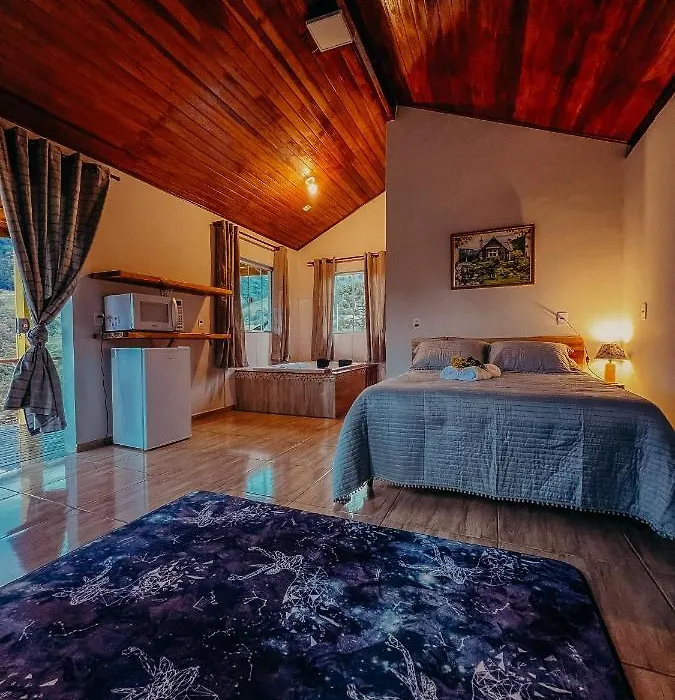 The kitchen amenities feature a fridge, provided in a dining area. Sao Jose dos Campos Regional airport is 130 km away from the chalet.